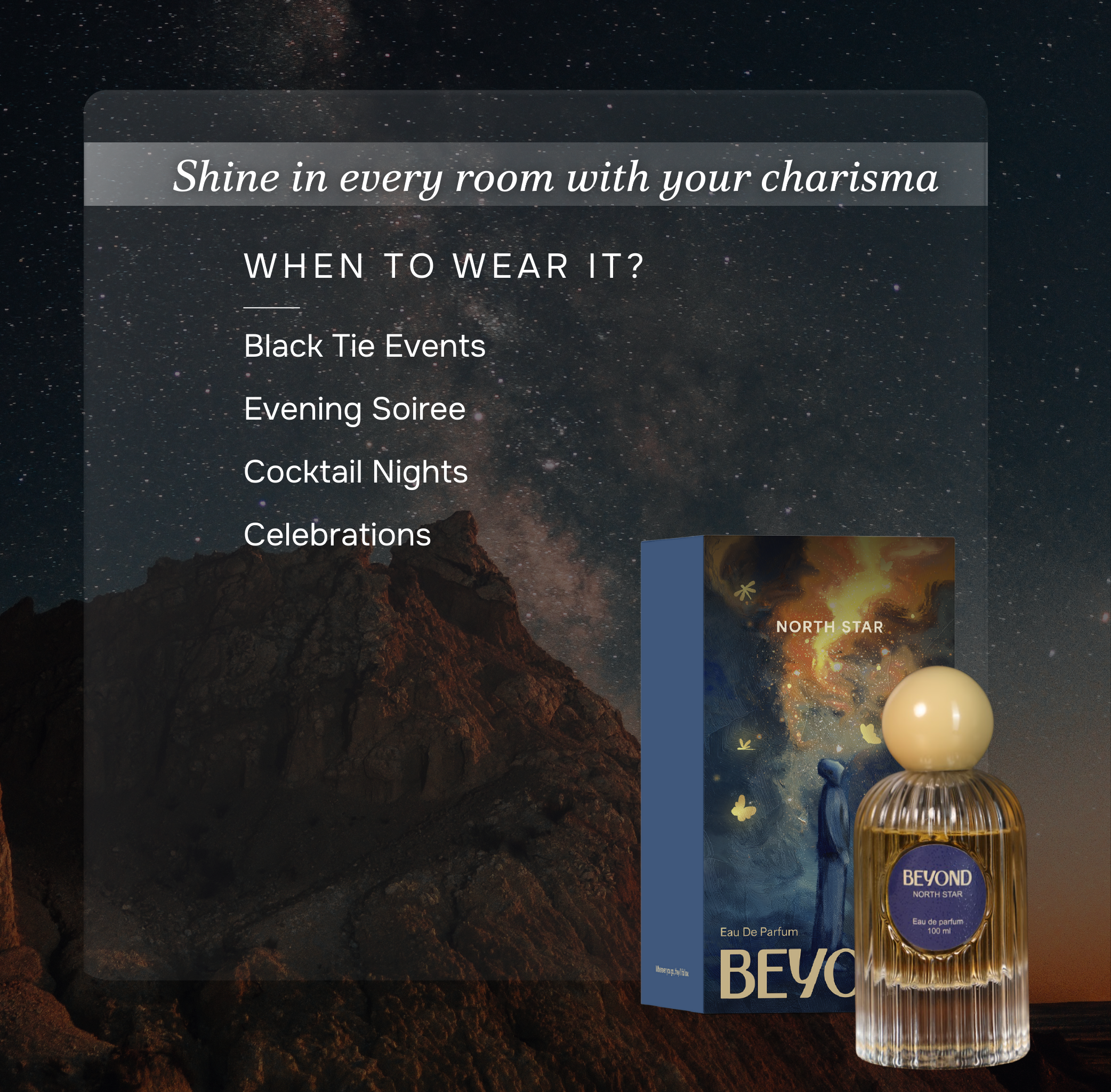 A crisp balance of subtle citrus and warm white musk, North Star melts into a leathery & musky base for a smooth, sophisticated dry-down that keeps you at the centre of everyone’s orbit.